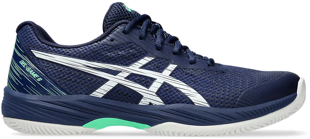 Мужские теннисные кроссовки Asics. Легкие и гибкие теннисные кроссовки GEL-GAME 9 Clay/OC универсальны для игроков на любых кортах. Сохраняя отличные поддерживающие свойства, Asics сосредоточились на улучшении вентиляции и гибкости обуви. Эта обувь с открытой сеткой в верхней части, улучшающей воздушный поток и сохраняющей прохладу ног, дополнена накладками из синтетической кожи и полиуретановой пленкой, которая обеспечивает повышенную устойчивость при резких движениях.