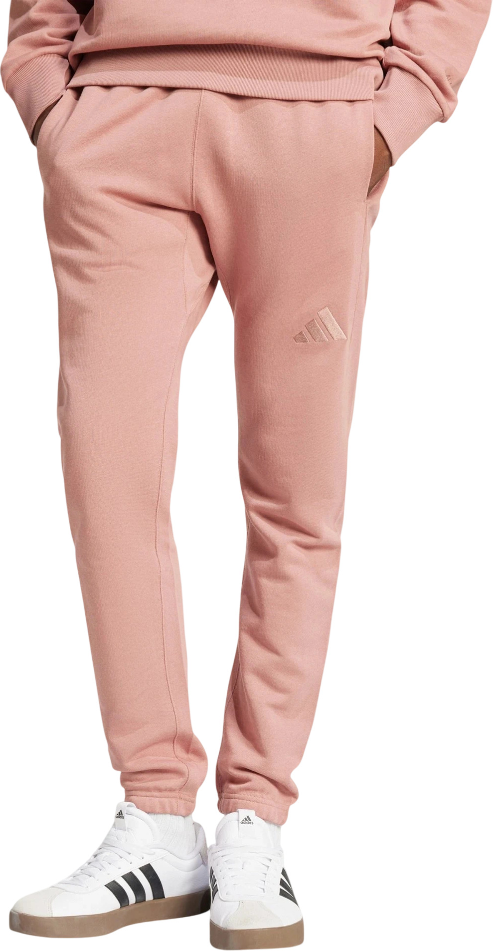 Комфорт обеспечен надолго. Эти брюки adidas станут твоей палочкой-выручалочкой для утреннего и послеобеденного отдыха, а также для всего, что между ними. Мягкая хлопковая махровая ткань обеспечивает уют, когда ты отдыхаешь дома или бегаешь по городу. Зауженный крой с эластичными манжетами, непринужденный, но изысканный, дополнен утягивающим шнурком на талии для индивидуальной посадки. Надень эти брюки с худи, чтобы создать непринужденный образ, или сочетай с любимой футболкой. Каким бы ни было настроение, эти брюки подойдут для любого случая.
