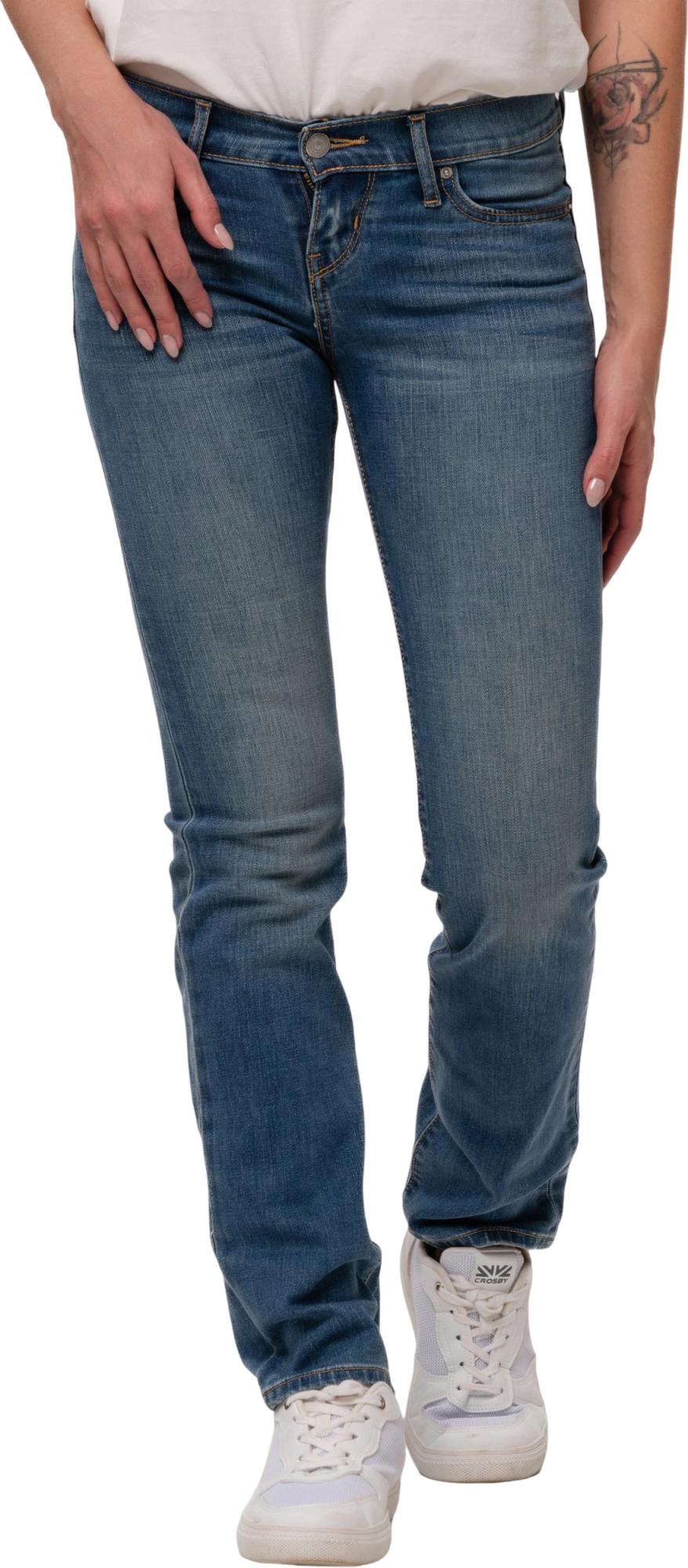 Женские джинсы Levis прямого кроя. Посадка чуть ниже талии. Классический стиль с пятью карманами. Фирменный лейбл Levis и дугообразные строчки на задних карманах.