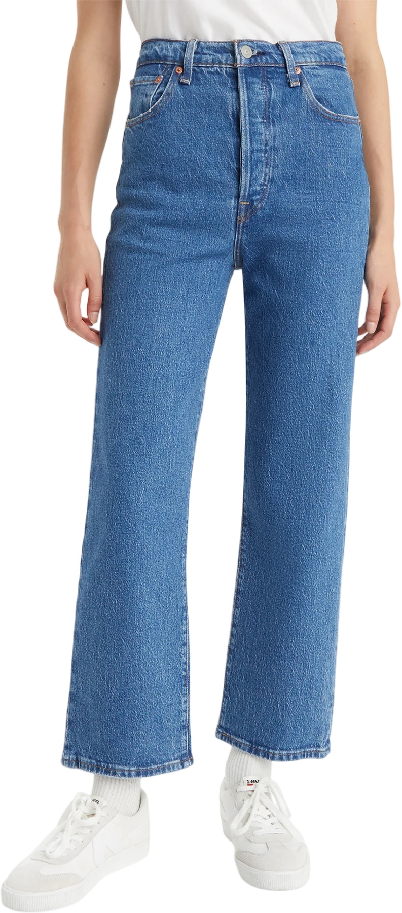 Женские джинсы Levis Ribcage Straight Ankle синего цвета. Выполненные из мягкого денима, они дарят приятное ощущение комфорта. Свободный крой от бедра. Высокая посадка, подчеркивающая талию. Длина до щиколотки. Застежка на пуговицы-болты. Фирменный лейбл Levis и дугообразные строчки на задних карманах. Нашивка с культовым логотипом Two Horse Pull, олицетворяющим прочность одежды.