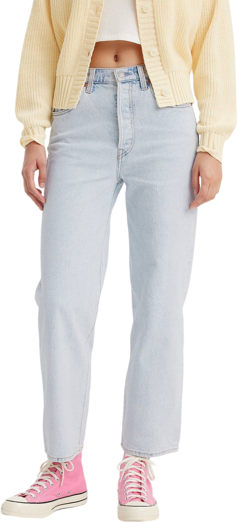 Джинсы прямого кроя с высокой посадкой для подчеркивания талии. Ширинка на пуговицах. Легендарная кожаная нашивка на талии сзади. Длина до щиколотки. Классический стиль с пятью карманами. Фирменный лейбл Levis и дугообразные строчки на задних карманах.