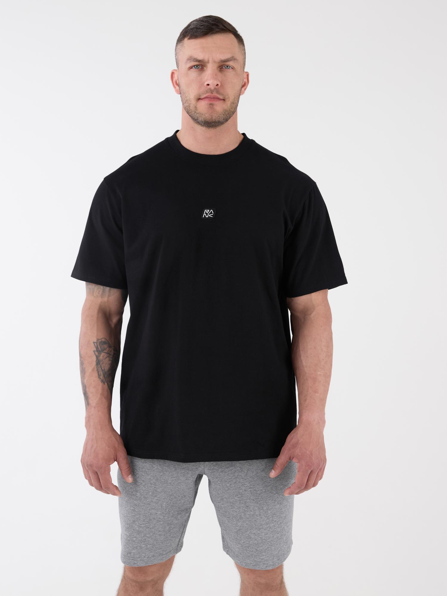 Футболка оверсайз из 100% хлопка с широкой горловиной и патчем лого на фронтальной и задней сторонах.