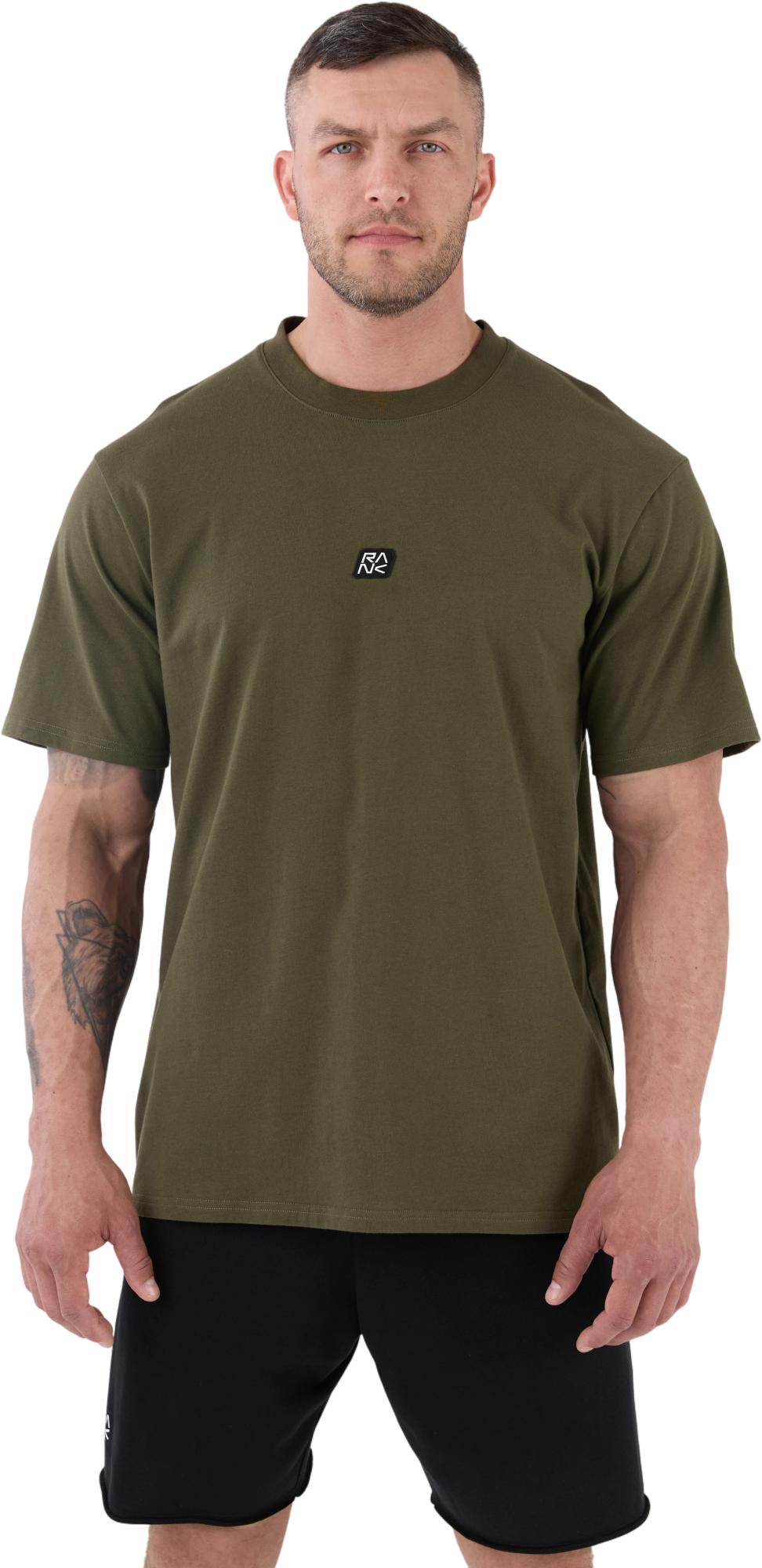 Футболка оверсайз из 100% хлопка с широкой горловиной и патчем лого на фронтальной и задней сторонах.