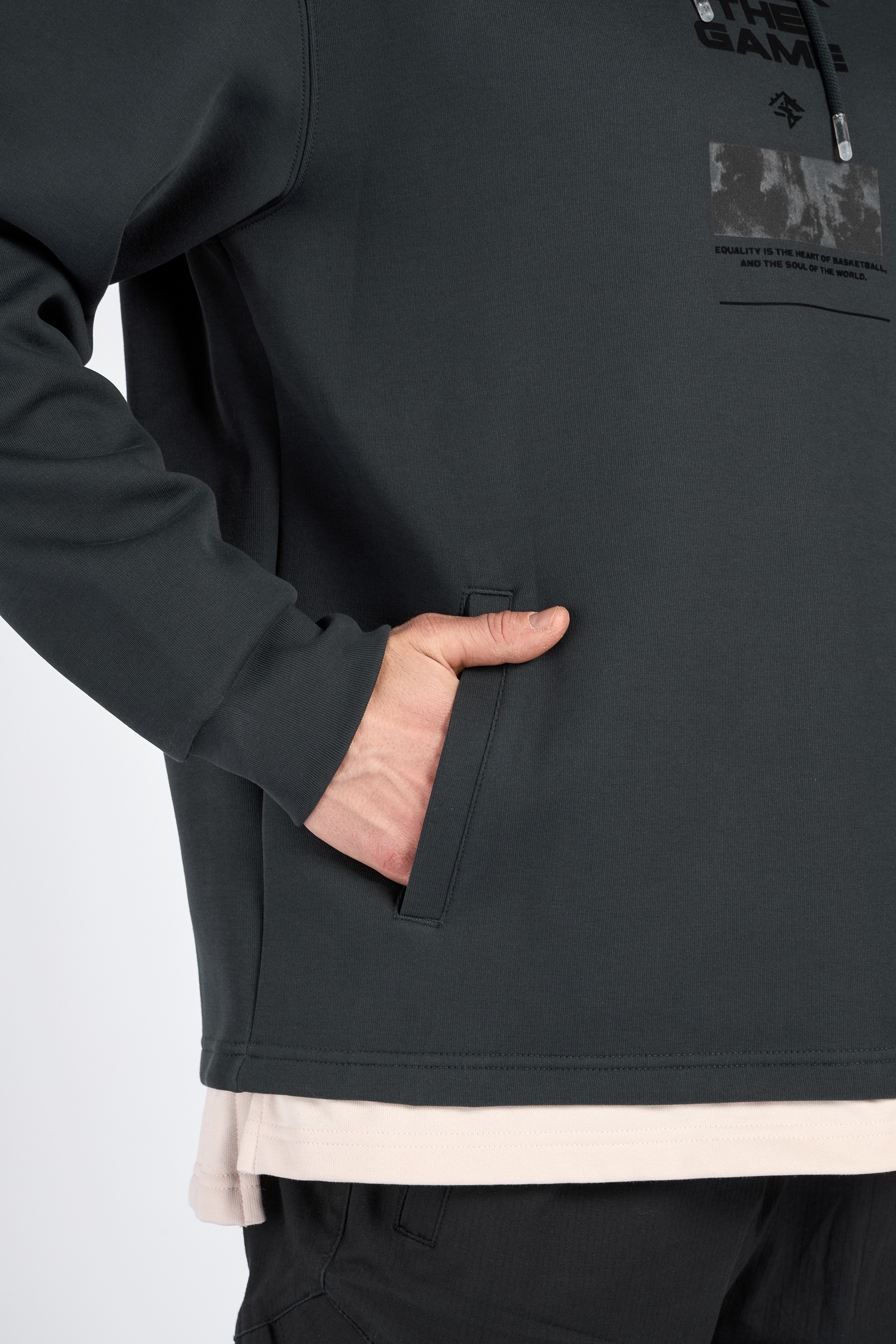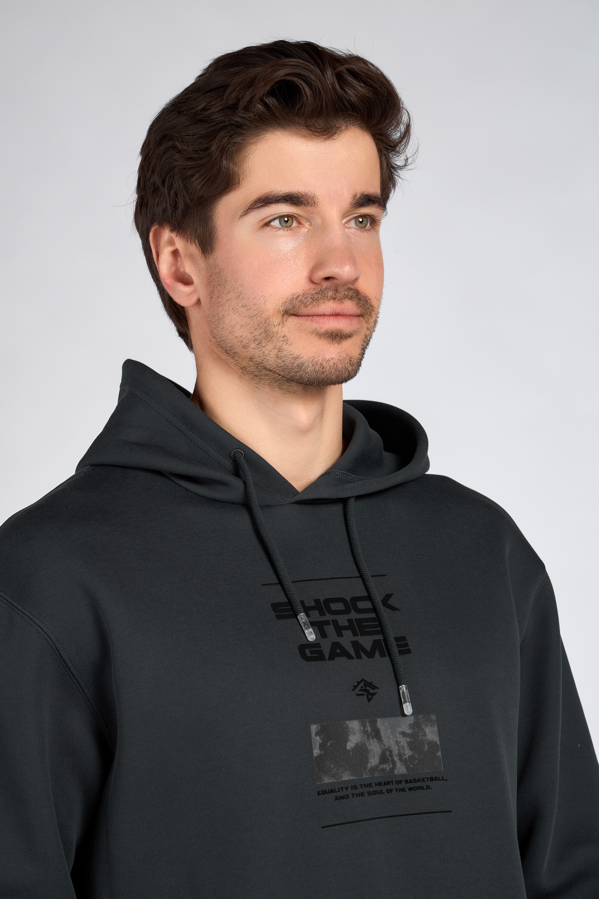 Мужская серая худи изготовлена из высококачественных материалов: 55 % хлопка и 45 % полиэстера. Это обеспечивает комфорт и долговечность изделия. Худи оснащена регулируемым капюшоном, эластичными манжетами на рукавах и двумя удобными карманами по бокам. Чёрный принт на груди добавляет стиля и делает эту модель универсальной для любого гардероба.
