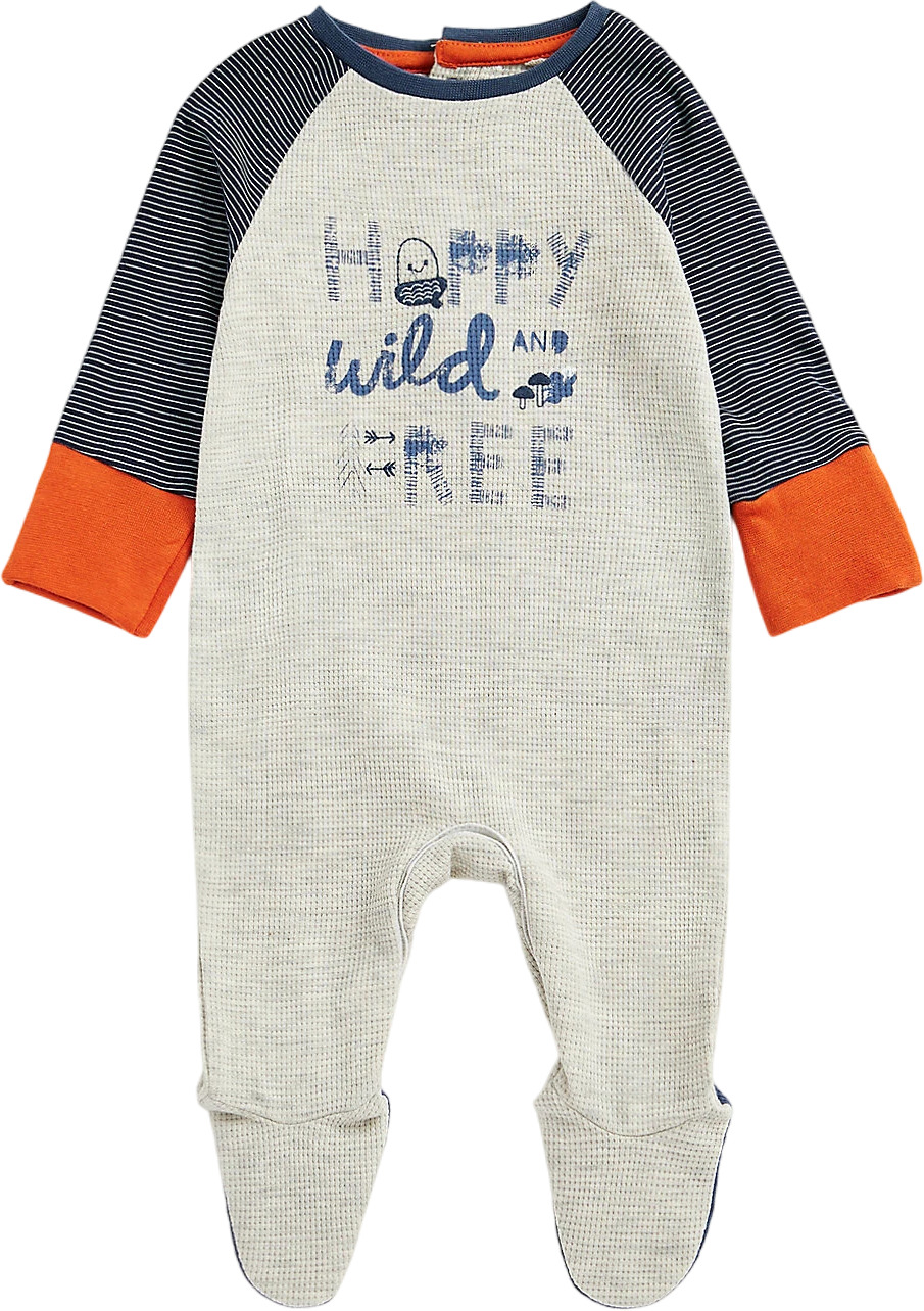 Хлопковый слип из коллекции "Волшебный лес" бренда Mothercare — это идеальное сочетание комфорта и стильного дизайна. Он украшен выразительной надписью "Счастливый, дикий и свободный". Слип оснащен удобными безникелевыми кнопками на спине и по ножкам, что облегчает переодевание. В размерах 50 и 56 см предусмотрены наружные швы для дополнительного комфорта малышей, а до 68 см — вшитые рукавички-антицарапки. Закрытый носок и технология Toe-Safe обеспечивают безопасность. Для размеров от 80 см предусмотрена нескользящая подошва. Специальная обработка ткани сохраняет мягкость после стирки, даря вашему малышу уют и заботу.