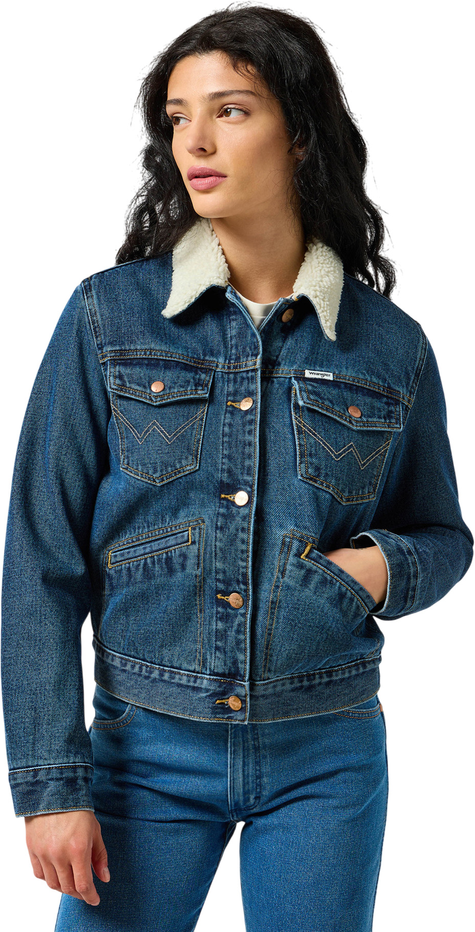 Wrangler Heritage Sherpa Jacket – это универсальный элемент гардероба, который легко комбинируется с джинсами, брюками или юбками, создавая стильные образы для любого случая. Эта куртка станет отличным выбором для женщин, ценящих качество и элегантность в