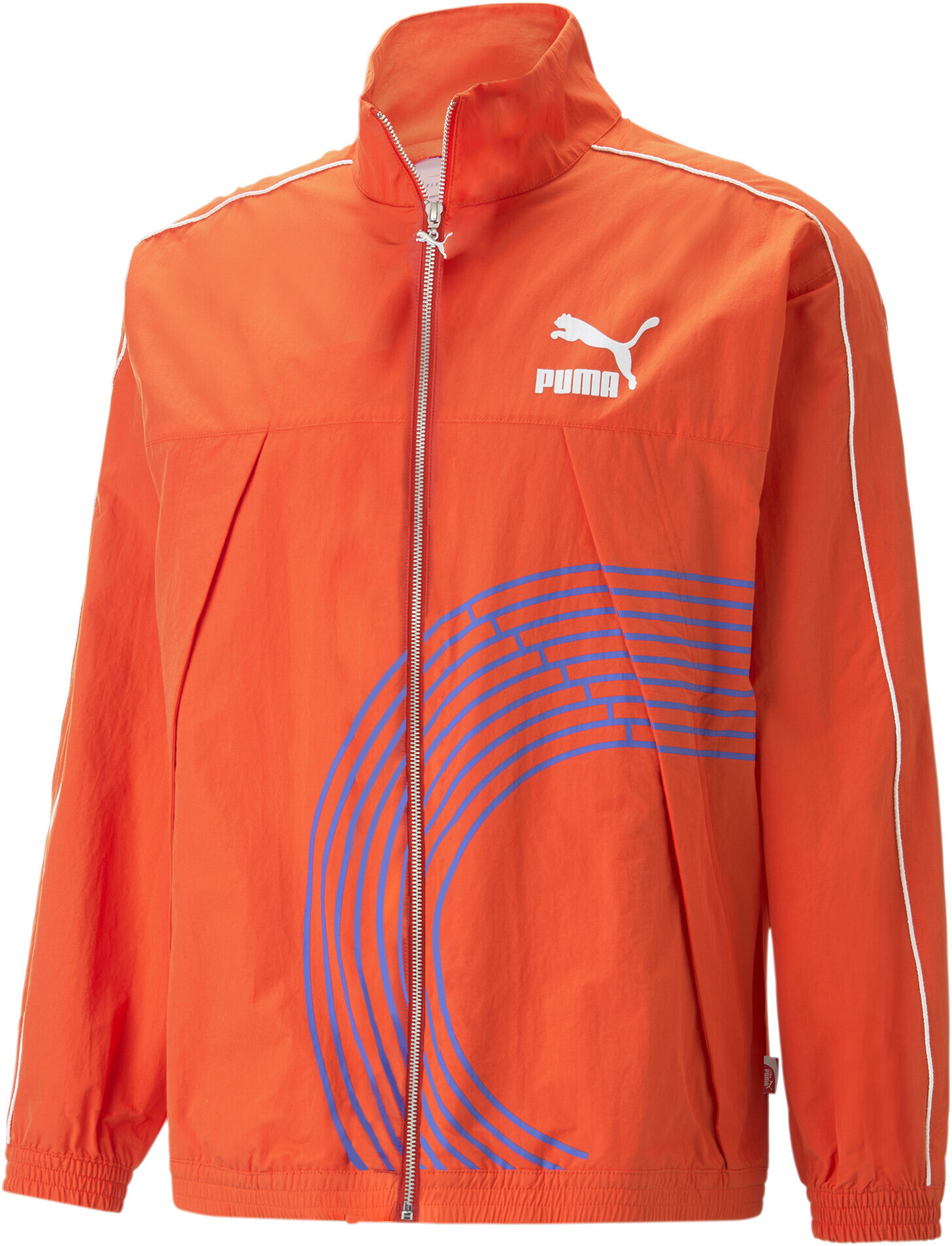 Коллекция Track Meet посвящена 75-летнему юбилею и отдает дань нашим достижениям в спорте. Эта куртка представляет собой переработанную версию классической спортивной куртки T7 в ретростиле, источником вдохновения для которой послужила традиционная беговая одежда. Куртка имеет вентиляционные отверстия на спине для улучшения циркуляции воздуха, а также контрастную окантовку и графику в архивном стиле.