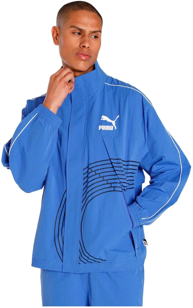 Коллекция Track Meet посвящена 75-летнему юбилею и отдает дань нашим достижениям в спорте. Эта куртка представляет собой переработанную версию классической спортивной куртки T7 в ретростиле, источником вдохновения для которой послужила традиционная беговая одежда. Куртка имеет вентиляционные отверстия на спине для улучшения циркуляции воздуха, а также контрастную окантовку и графику в архивном стиле.