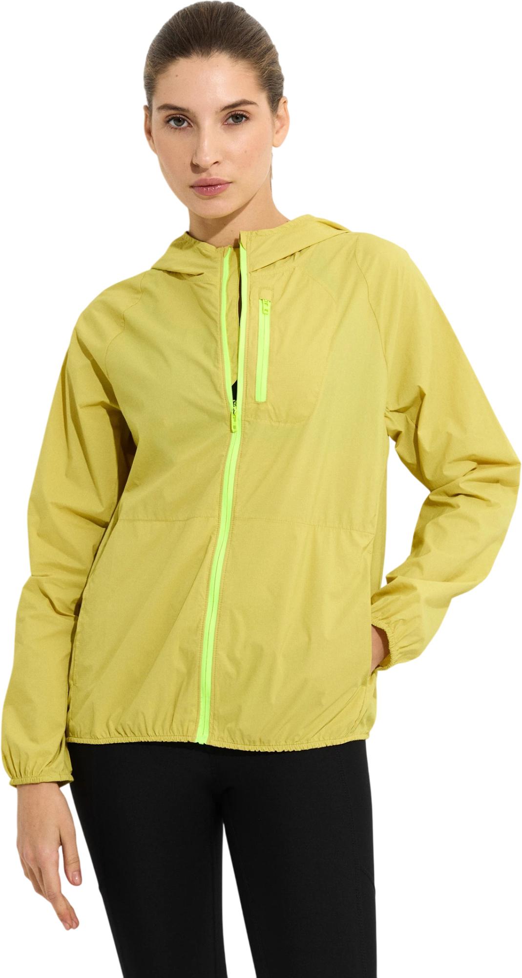 Регулируемый капюшон обеспечивает плотную посадку; козырек улучшает обзор и дополнительно защищает от осадков.