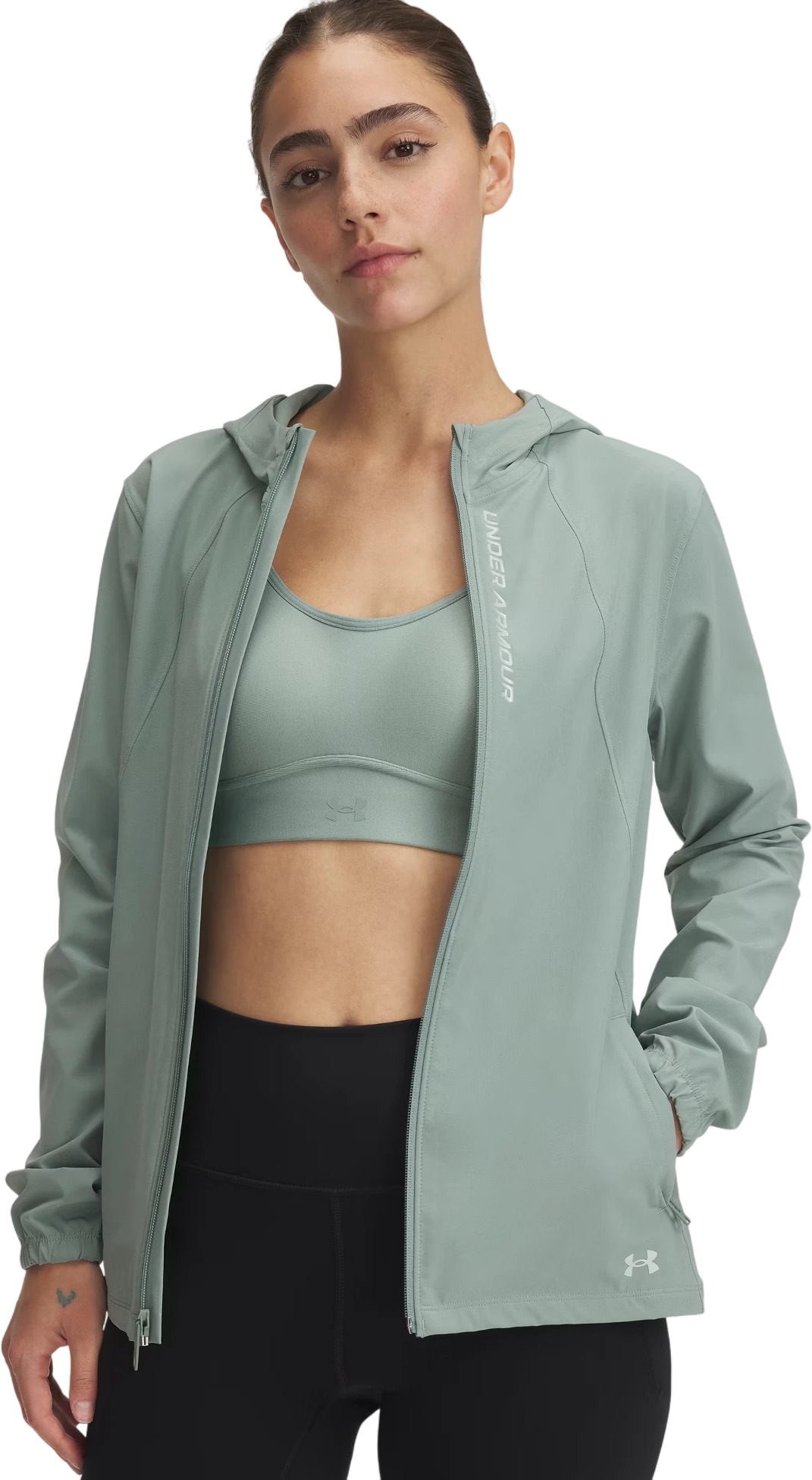 - Outrun The Storm Jacket предназначена для полной защиты от ветра и дождя. Инновационная технология UA Storm обеспечивает водоотталкивающий эффект, сохраняя при этом дышащие свойства материала.