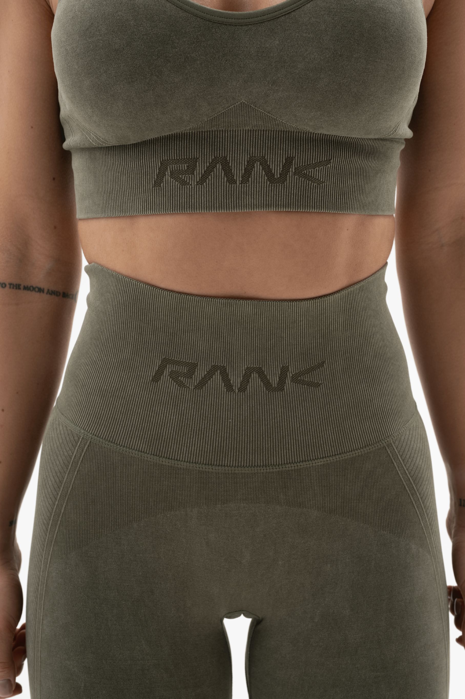 - Широкий ребристый пояс с логотипом RANK подчеркивает талию, обеспечивая надежную поддержку и создавая изящный силуэт.