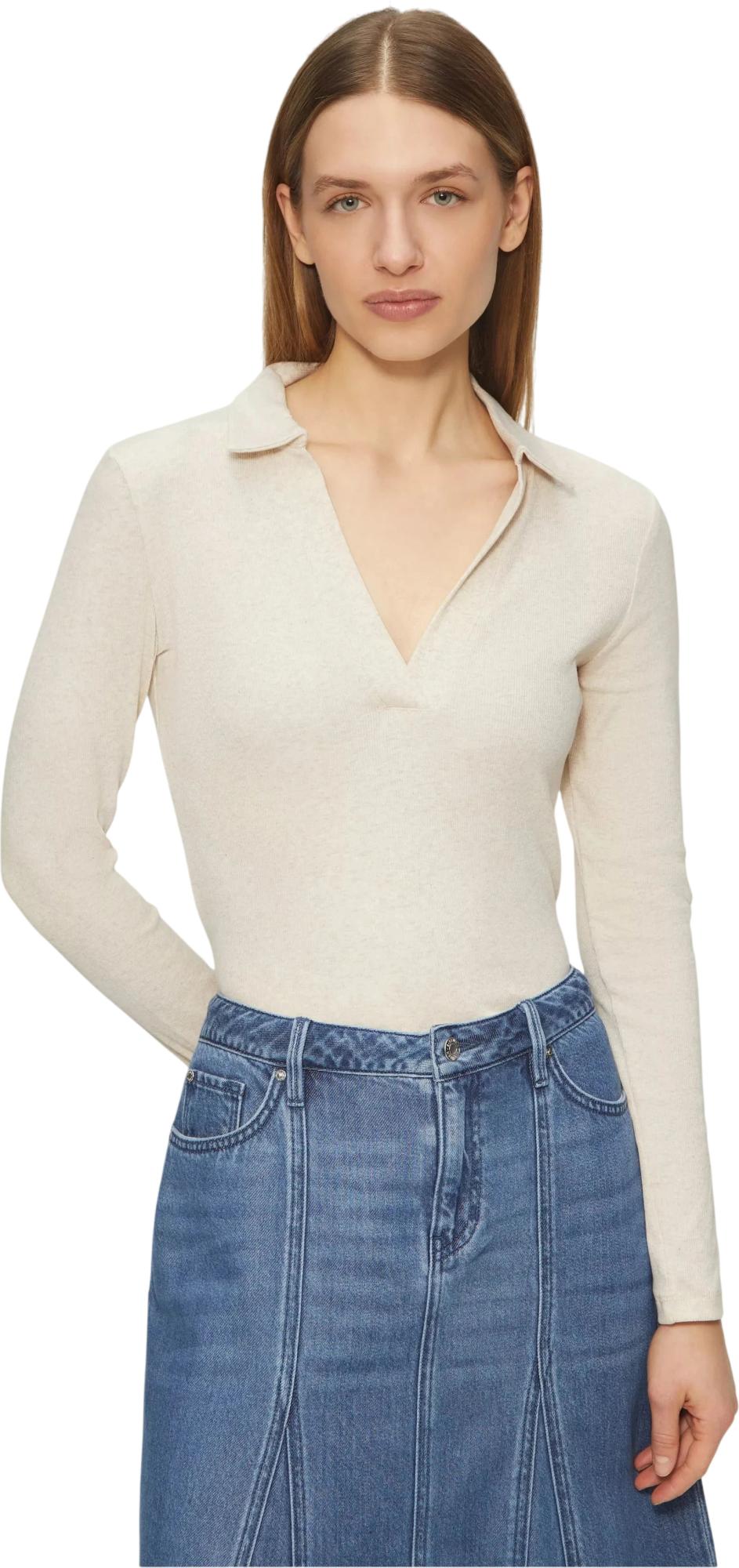 Лонгслив в рубчик с воротником поло — идеальный выбор для тех, кто ценит комфорт и стиль. Он выполнен из мягкой хлопковой смеси, обеспечивая уют, который так нужен в расслабленные воскресные дни. Облегающий крой подчёркивает фигуру, а V-образный вырез и изогнутый подол придают модели утончённость и изящество. Этот лонгслив прекрасно подойдёт как для похода в любимую кофейню, так и для уютного домашнего вечера. Будьте уверены: в нём вы всегда будете выглядеть и чувствовать себя превосходно.