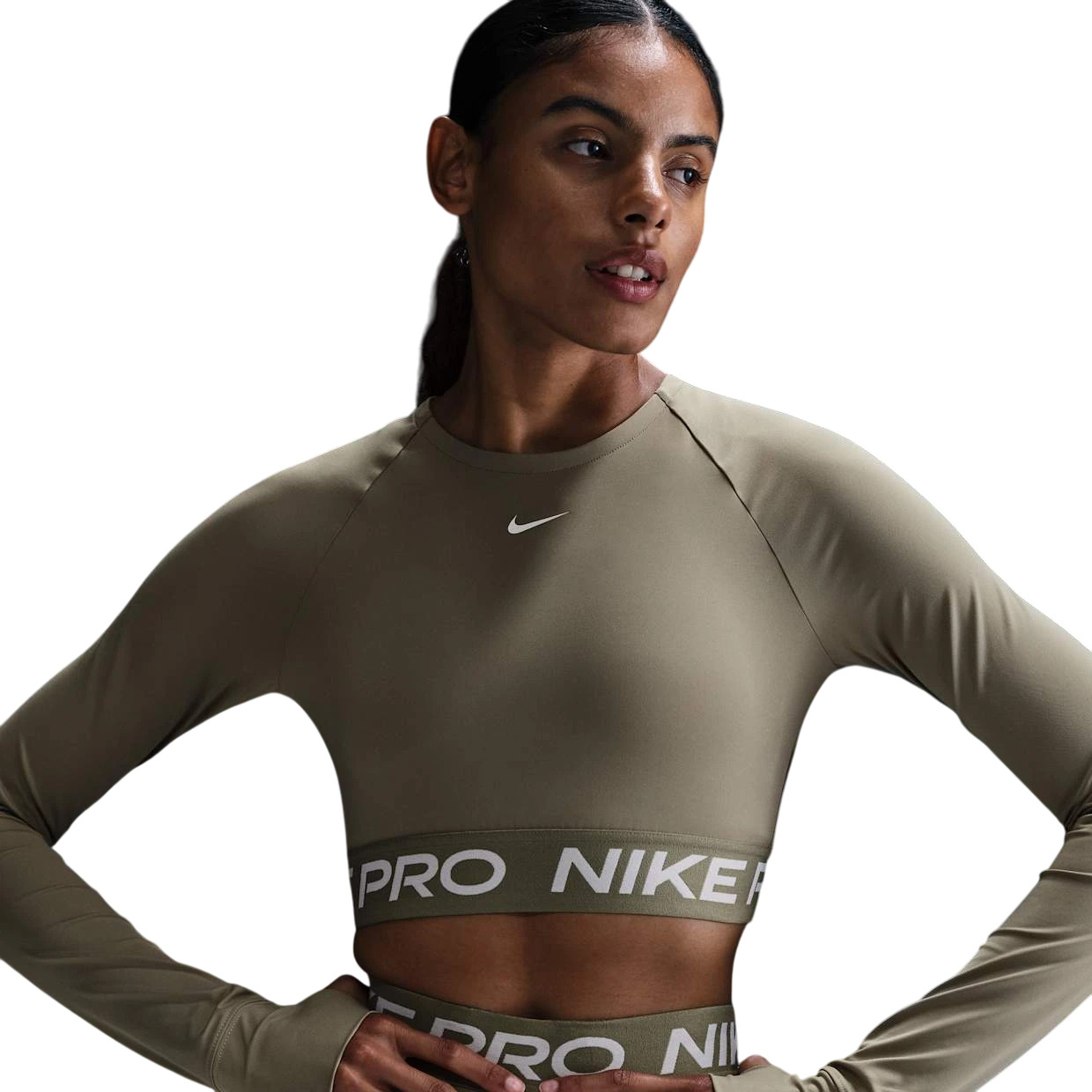 Легкая и эластичная, гладкая ткань быстро сохнет, помогая вам оставаться готовыми, когда тренировка становится жаркой. Благодаря облегающему крою и мягкой жаккардовой резинке на подоле вы можете чувствовать себя в безопасности, достигая своих целей. Непримиримый, уверенный стиль подходит ко всему. От леггинсов до топов и многого другого, Nike Pro готов дополнить ваш гардероб вещами, которые помогут вам выделиться. Технология Nike Dri-FIT отводит пот от кожи, ускоряя его испарение, помогая вам оставаться сухими и чувствовать себя комфортно.