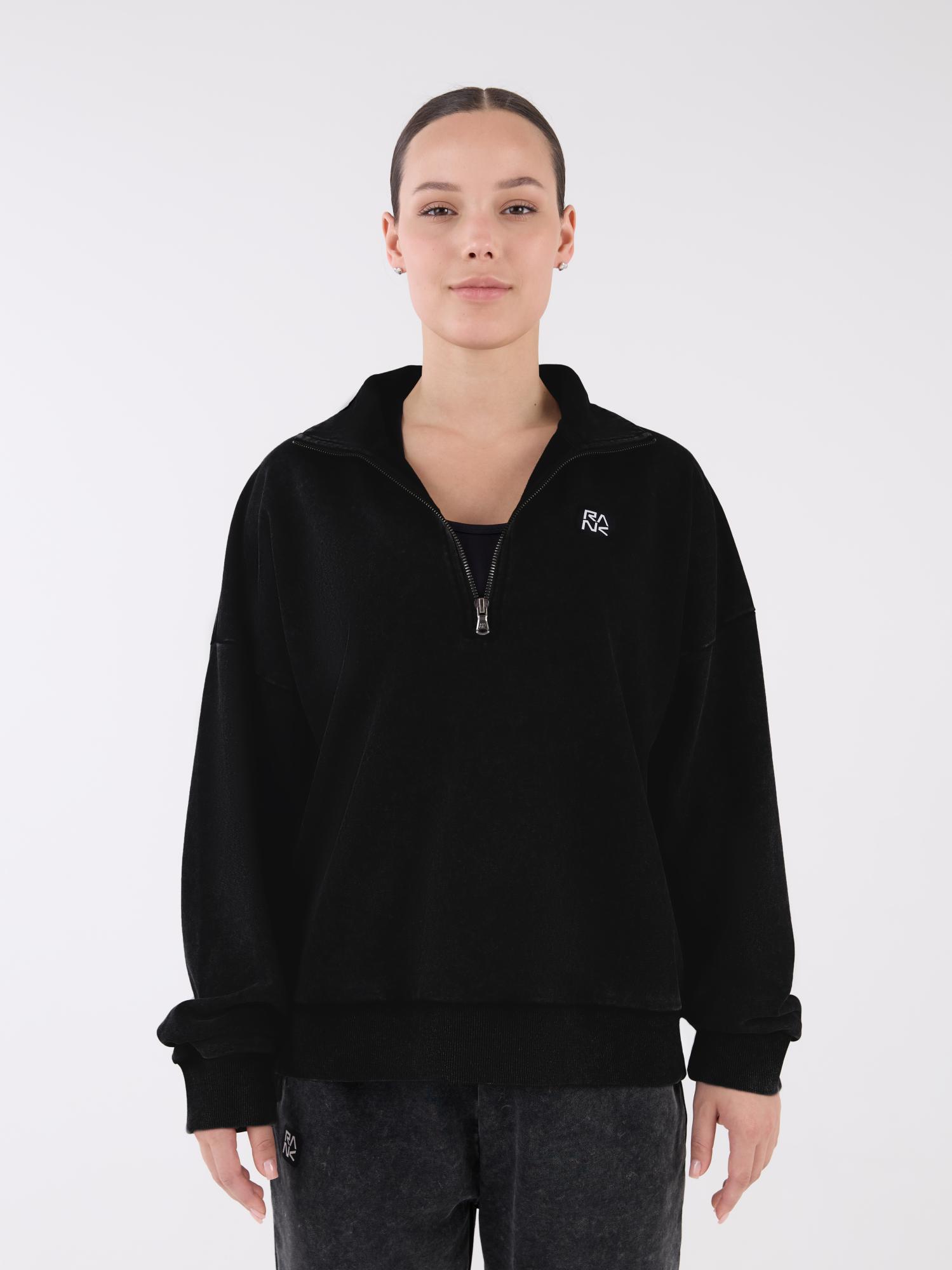 Базовая толстовка на молнии 3\4 с воротником стойкой, с лаконичным патчем спереди из гладкого петельчатого футера с резинкой внизу и на рукавах для идеальной посадки