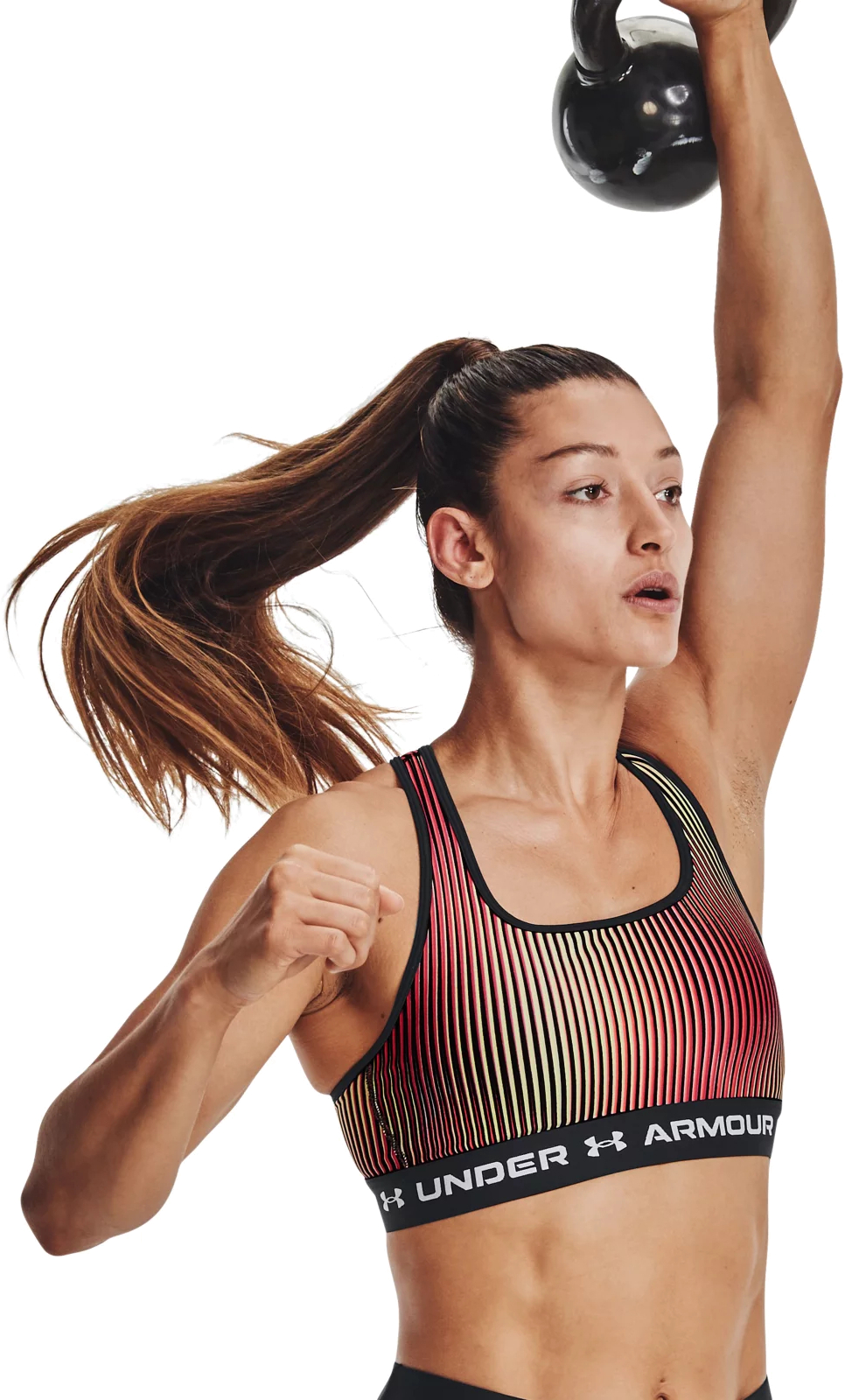Легкий материал с влаговыводящими свойствами. Технология HeatGear супер-дышащая ткань регулирует влагообмен и температуру тела в теплую погоду. Материал обеспечивает сухость, прохладу и оптимальный комфорт. Съемные чашечки. Уровень поддержки: средний (подойдет для всех видов физической активности средней интенсивности).