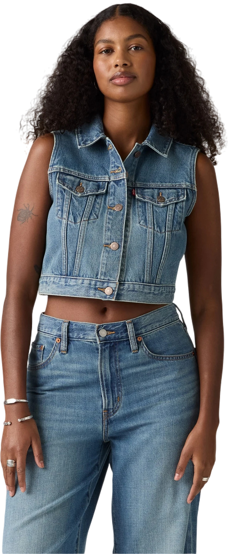 Эта жилетка укороченного кроя элегантно подчеркивает фигуру, делая акцент на талии и создавая изящный силуэт. Сочетайте ее с любимыми футболками, рубашками или даже платьями, чтобы создать неповторимые образы для любого случая. Эта джинсовая безрукавка станет неотъемлемой частью вашего стиля, подчеркивая вашу индивидуальность и тонкое чувство моды.